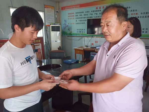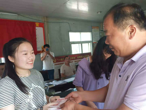 仪式上他为今年考上大学的七个孩子每人捐助了1000元,并向莘莘学子们表示衷心的祝愿!表达了他对教育事业和下一代的关怀,并表示今后将一如既往的支持和帮助他们。