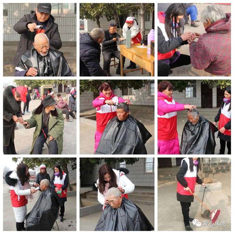 褚河镇志愿服务队在连西召的引导下,用自己带来的理发工具,指甲剪,周艳艳,徐大红,刘艳娟,常晓燕,任英勤,无梁志愿队的李铁妮等人纷纷用辛勤的双手像对待自己父母一样的为他们理发,剪指甲,打扫卫生。