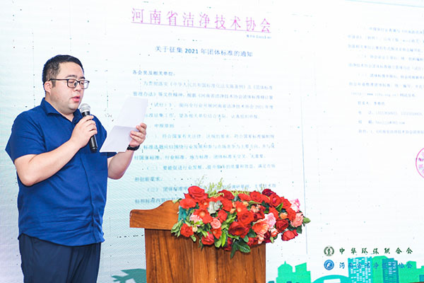 河南省洁净技术协会秘书长朱明星会上宣读省净协《关于征集2021年团体标准的通知》文件。