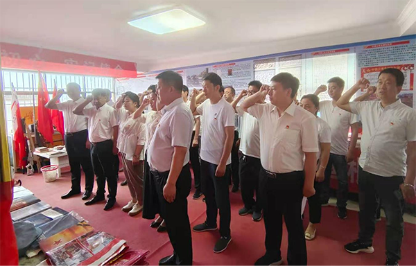 中网视赵明 郭胜 河南南阳讯 在庆祝建党100周年之际,方城县粮食和物资储备中心机关党员干部到方城红色文化馆参观学习,以党史学习教育“听党话跟党走讲奉献”为主题,举行庄重的入党宣誓仪式,全体人员面对党旗举起右拳,重温入党誓词,精神得到了洗礼,让党的信念在每名党员心中深深扎根,展现爱党爱国的热切情怀,诠释着对党忠诚的深刻内涵。