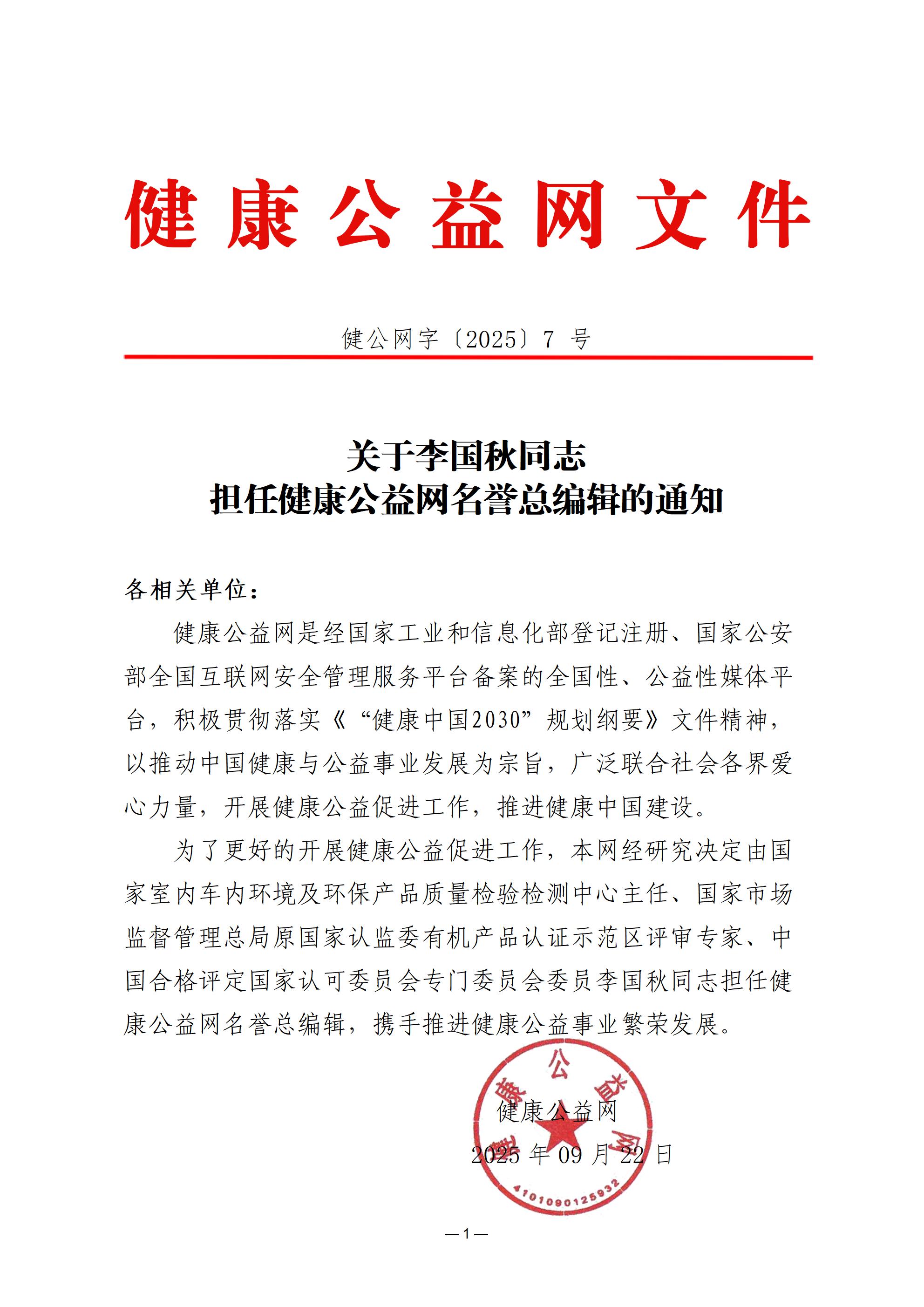 李国秋,健康公益网名誉总编辑、国家室内车内环境及环保产品质量检验检测中心主任、国家市场监督管理总局原国家认监委有机产品认证示范区评审专家、中国合格评定国家认可委员会专门委员会委员。